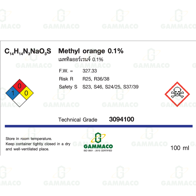 ชื่อภาษาอังกฤษ : Methyl Orange 0.1%