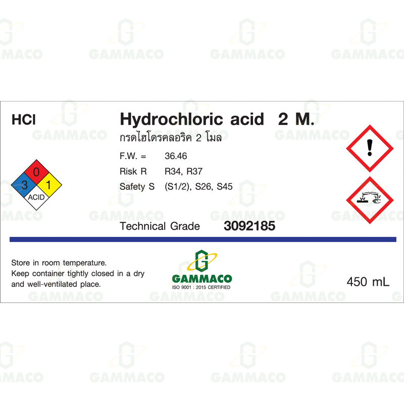 ชื่อภาษาอังกฤษ : Hydrochloric Acid