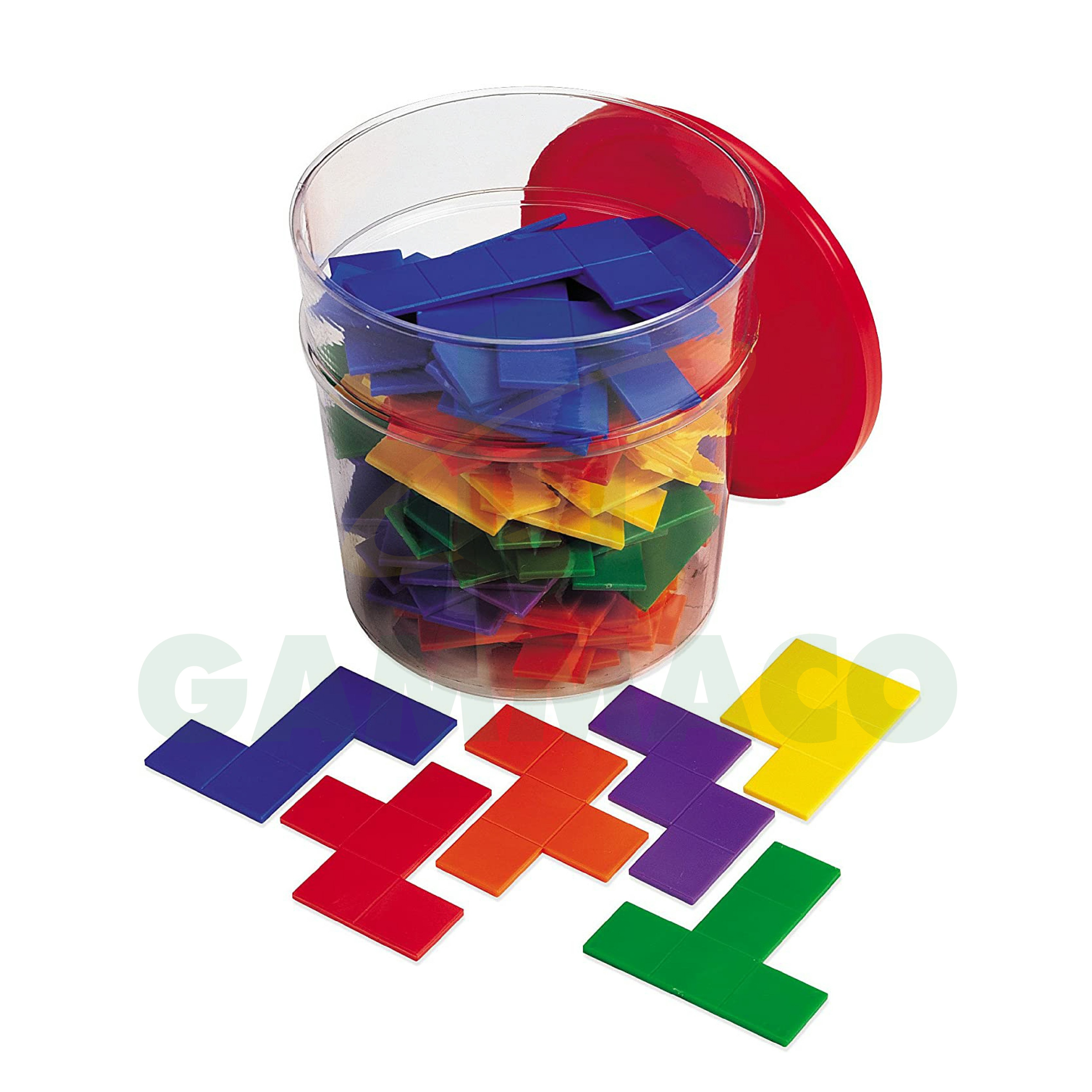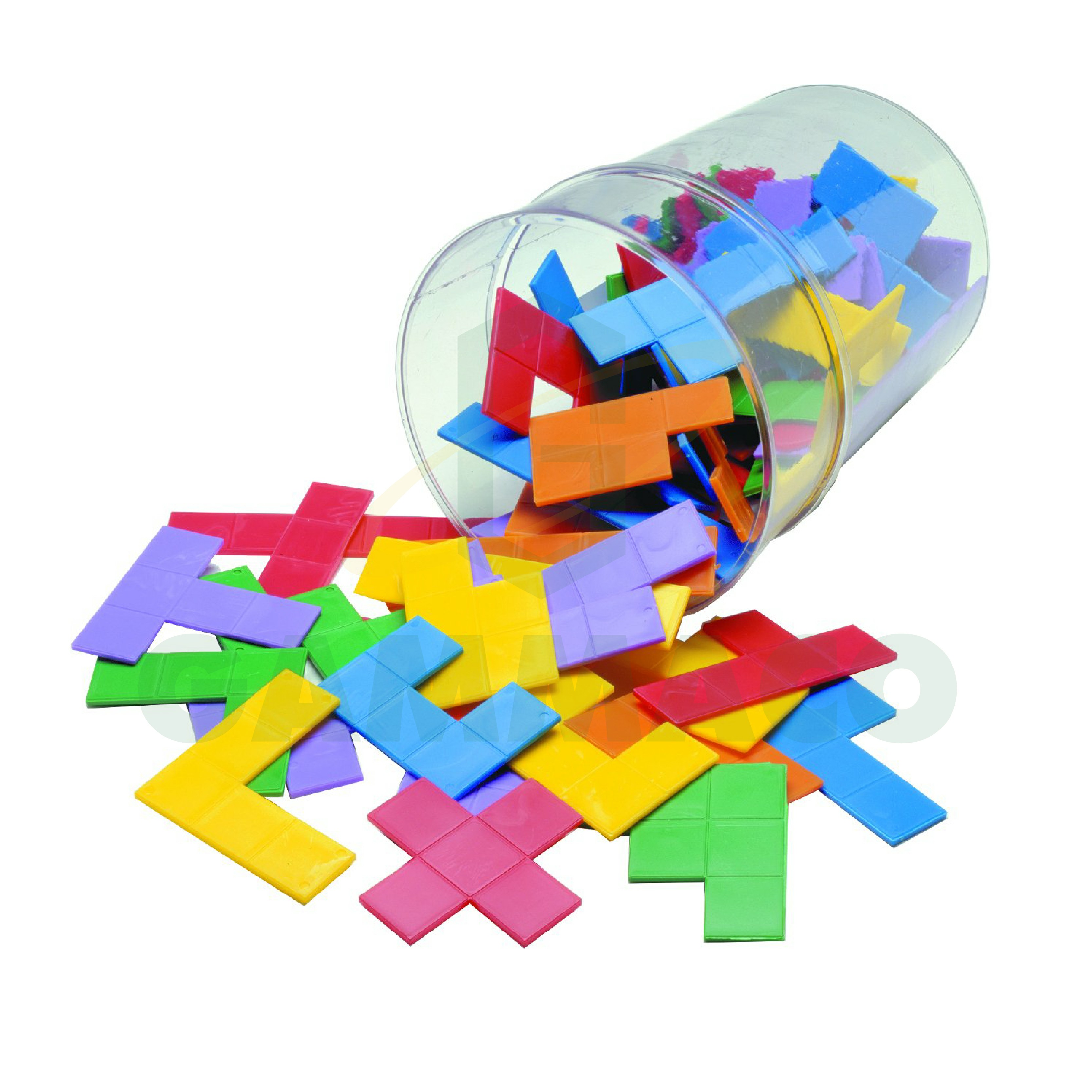 ทำจากพลาสติกแข็ง ทนทานต่อการใช้งาน ใช้สอนในเรื่องขอบเขต พื้นที่ ภายในชุดประกอบด้วยชิ้นส่วนต่าง ๆ 6 สี จำนวน 72 ชิ้น ในกล่องบรรจุที่แข็งแรง