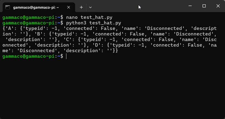 ผลลัพธ์ที่ควรได้รับ คือ ข้อมูลสถานะของ Build HAT แสดงออกมาทางหน้าจอ