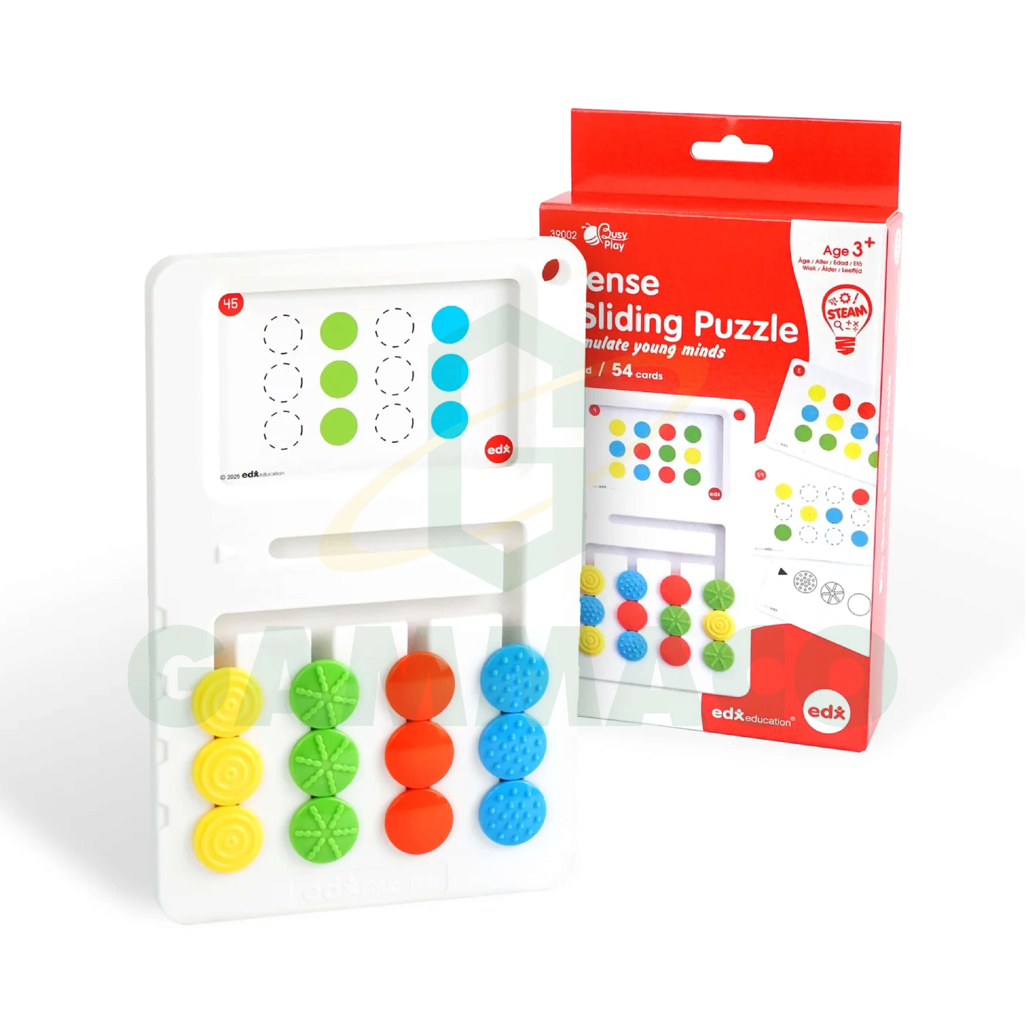 The Busy Play® iSense Sliding Puzzle is designed to stimulate the senses and help balance children's emotions. The puzzle pieces come in four different colors and textures, allowing children to explore with their fingertips while developing focus, matching skills, sliding skills, and observation skills, thus strengthening fine motor skills. Its compact size makes it perfect for carrying around and learning anywhere. The set includes: